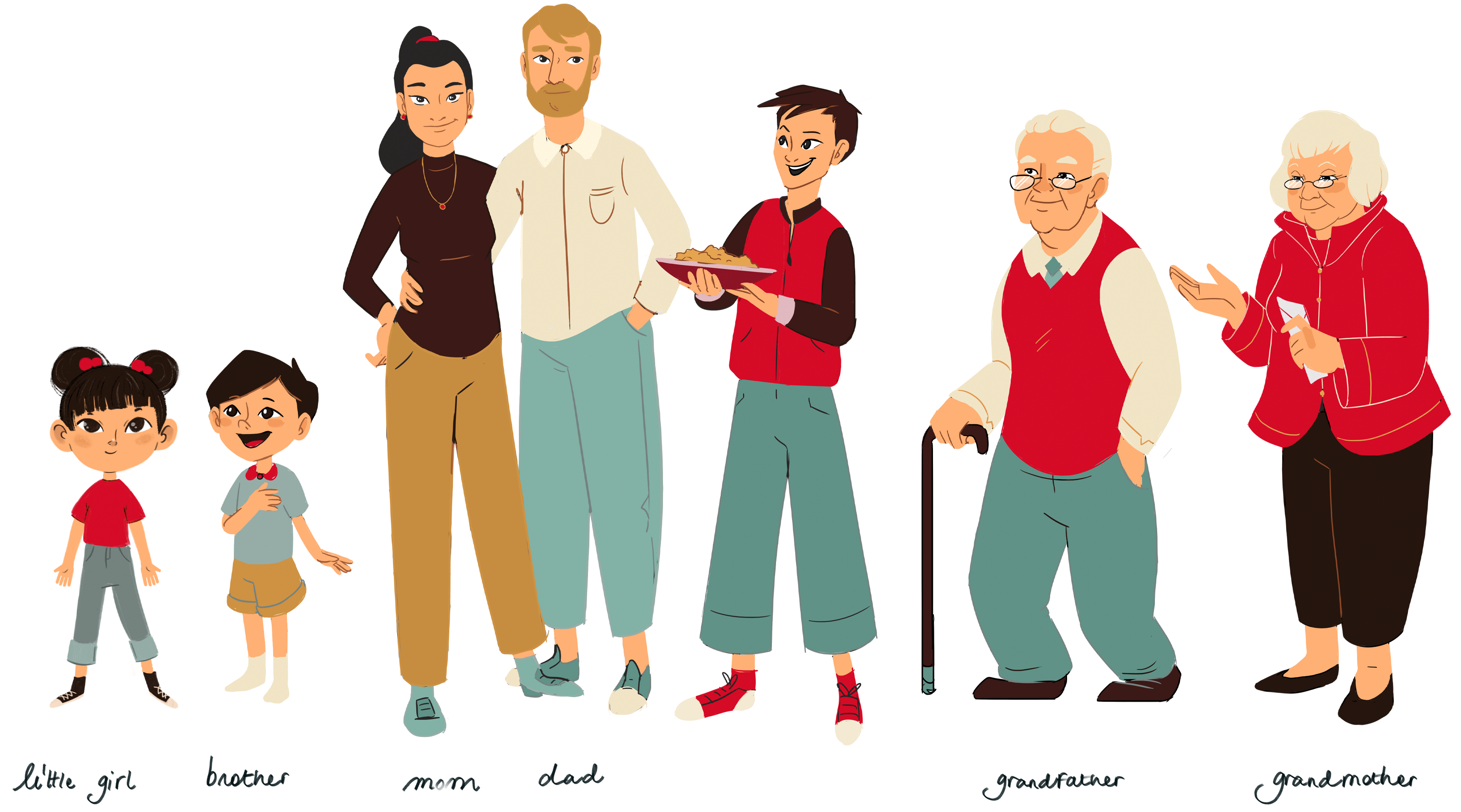 Finding a correct feel for the Asian-American family was important. Panda Express is not only Chinese, but Chinese American food, and we wanted that to come across in our characters as well. The clothes also had to reflect this.