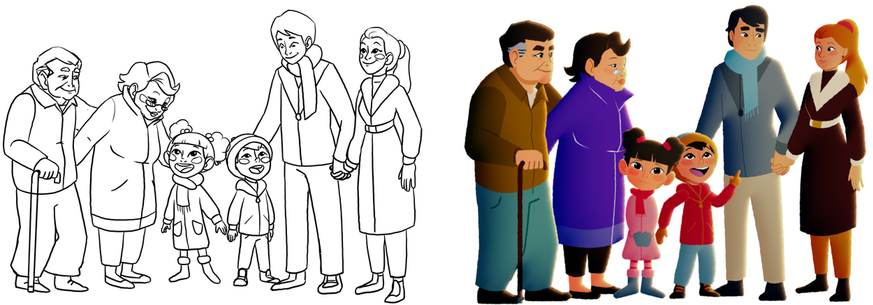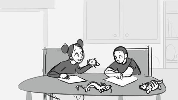 We had a few different styles throughout the films, the main ones being the world that the family lived in, and then the world that the kids were drawing and creating. Finding that sweet spot where they meshed was more difficult than we first expected, as well as consistently transition between the two worlds.