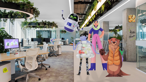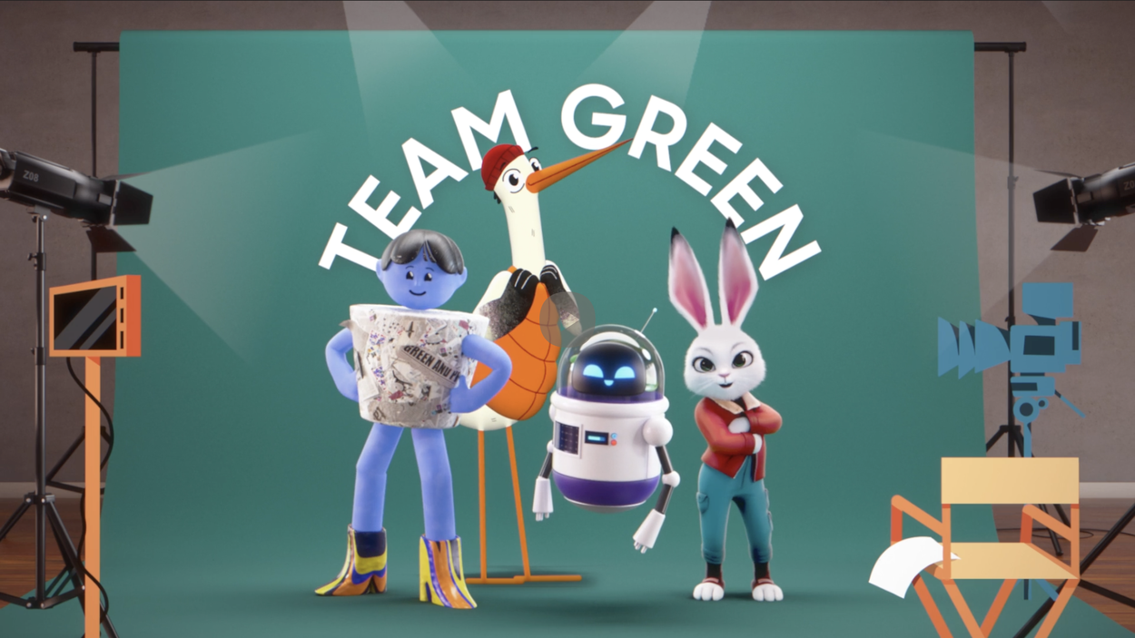 The challenge was to bring together a team of characters that felt cohesive, but still different enough to represent a wide range of things and people. We chose to have each character in a different style, alongside a real 3D world with 2D elements mixed in.