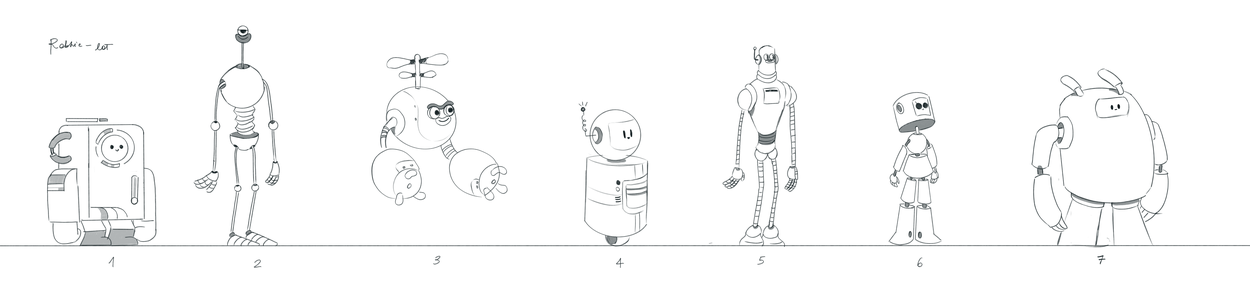 Robbie, our robot, was a tough one. How do you make a robot feel organic and plant-like while still being cute? In the end, the solution was to give him a little plant of his own to care for.